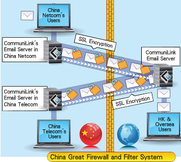 CommuniLink has insight to the above email problems; therefore, a Smart Email System has been developed. We got Smart DNS servers in two main China network companies in China, China Netcom and China Telecom. Servers adopt the encrypted transmission technology, which can avoid the connection problems of congestion and obstruction between China and Overseas. Hence, to ensure you keep a close and stable connection with China clients or business partners and to assist you have a smooth business operation between China, Hong Kong and overseas.